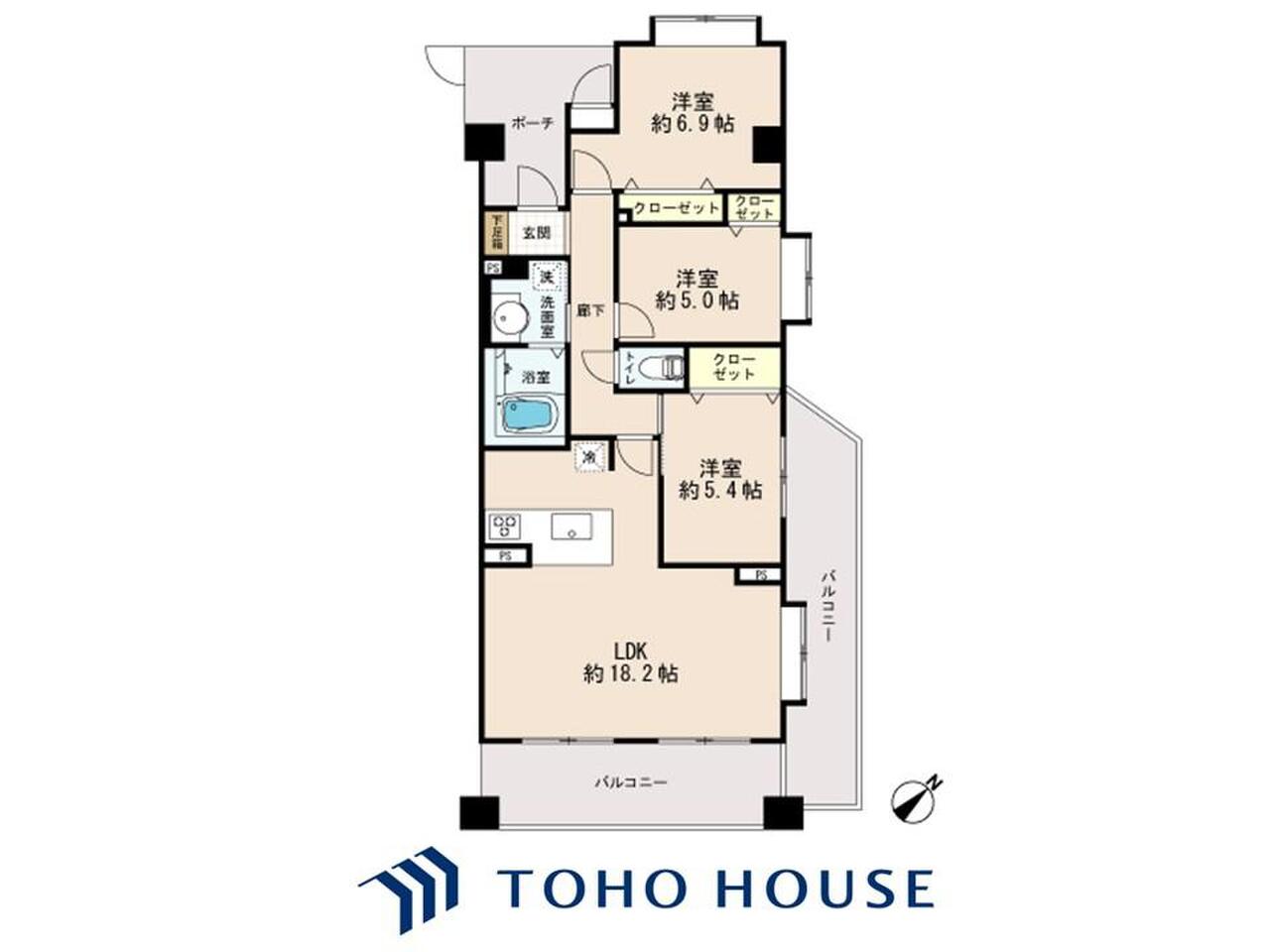 | 間取り | 3LDK | 専有面積 | 86.06m²(壁芯) |