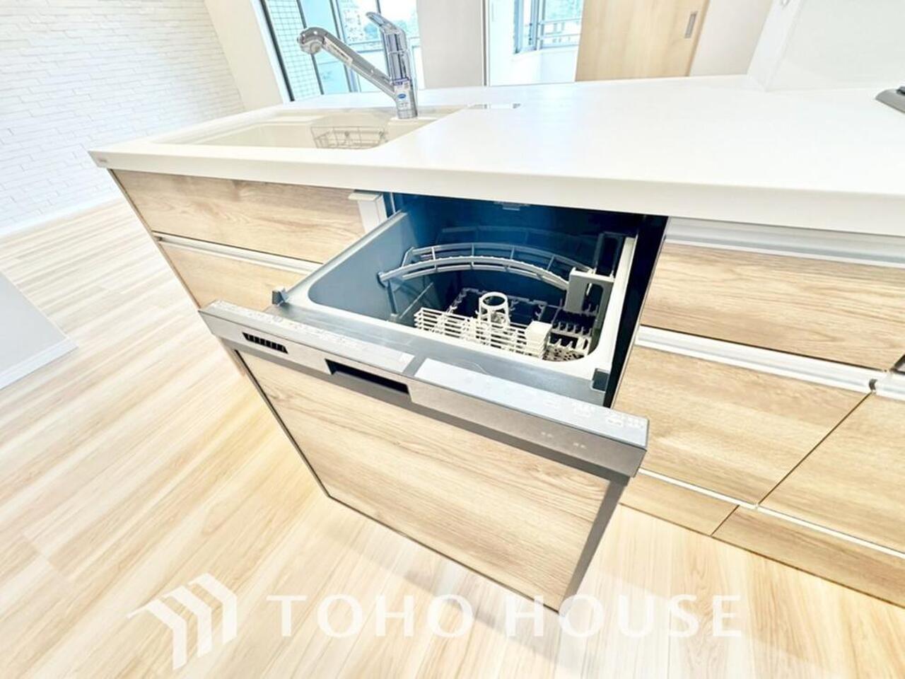 「ビルトインタイプ食器洗乾燥機」通常の手洗いでは使用出来ないほど高温のお湯や高圧水流を使うことにより汚れを効果的に落とすことができる。
