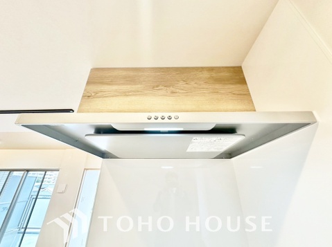 昨今主流のスリムタイプのレンジフード。スタイリッシュな見た目からインテリアとしても人気がある型です。