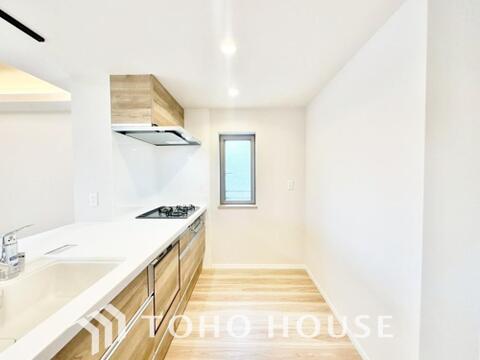 夫婦そろってキッチンに立っても調理がしやすく余裕の広さ。家事をしながら会話も弾みます。