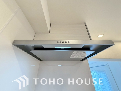 見た目すっきりのスリムタイプのレンジフード。掃除のし易さも◎です。