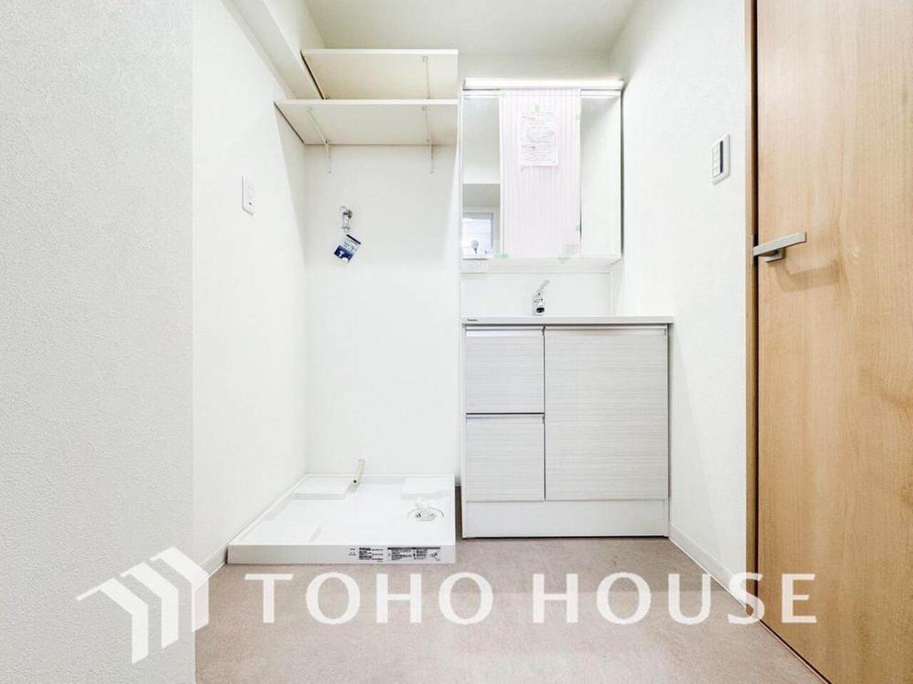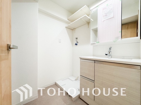 身だしなみのチェックがしやすい大きな鏡、下には収納がたっぷり。スッキリとした空間を演出いたします。