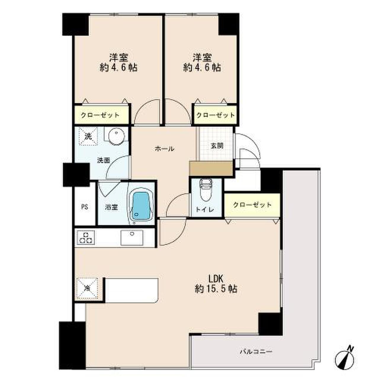 | 間取り | 2LDK | 専有面積 | 55.04m²(壁芯) |