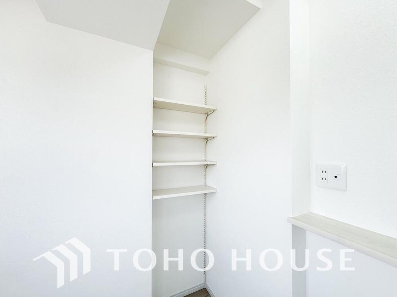 建物内部の収納には拘りました。共有部分に設けた収納。お荷物が多い方にも安心です。