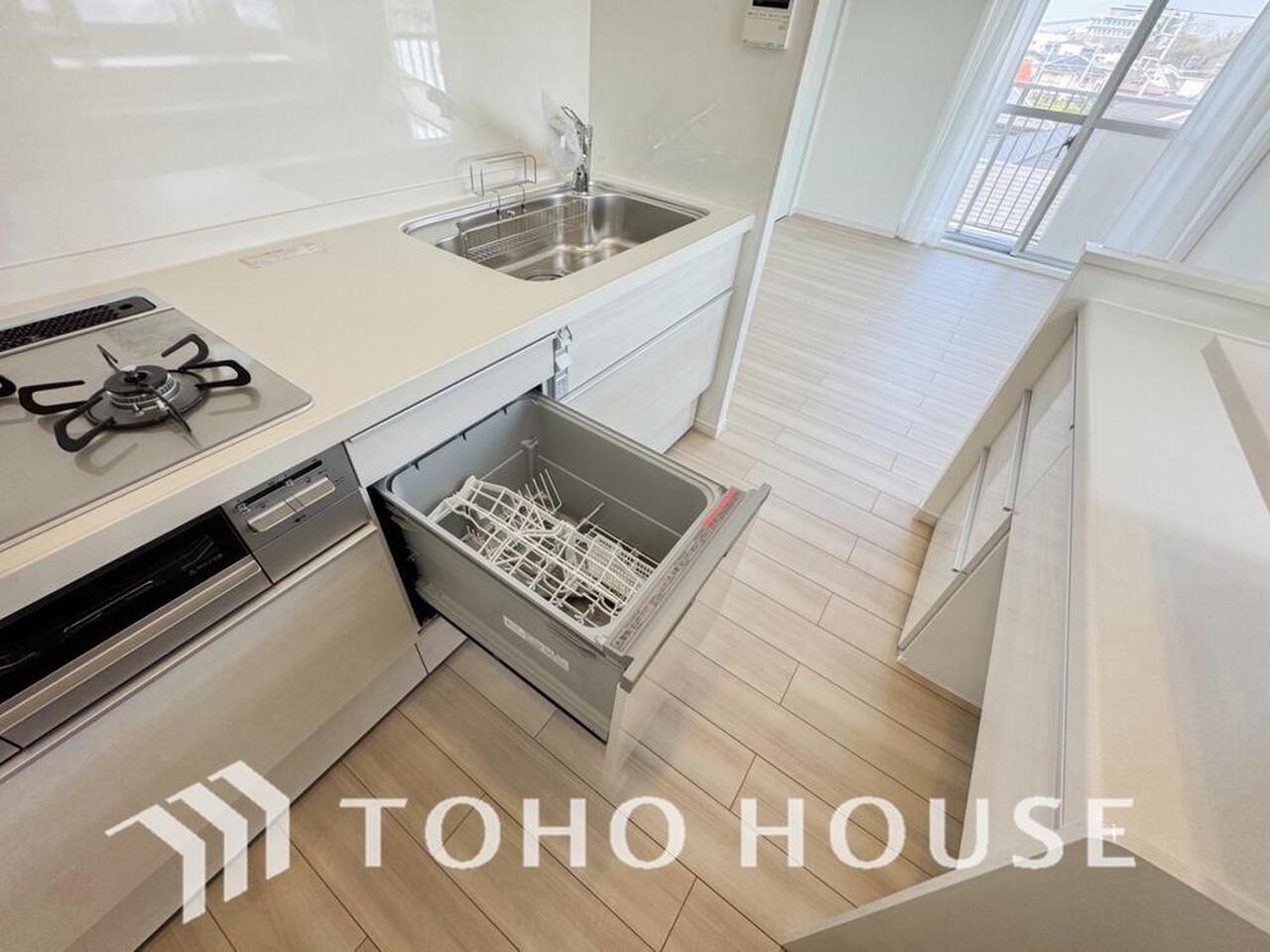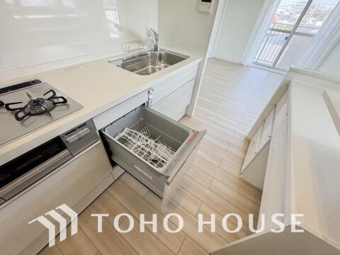 「ビルトインタイプ食器洗乾燥機」通常の手洗いでは使用出来ないほど高温のお湯や高圧水流を使うことにより汚れを効果的に落とすことができる。