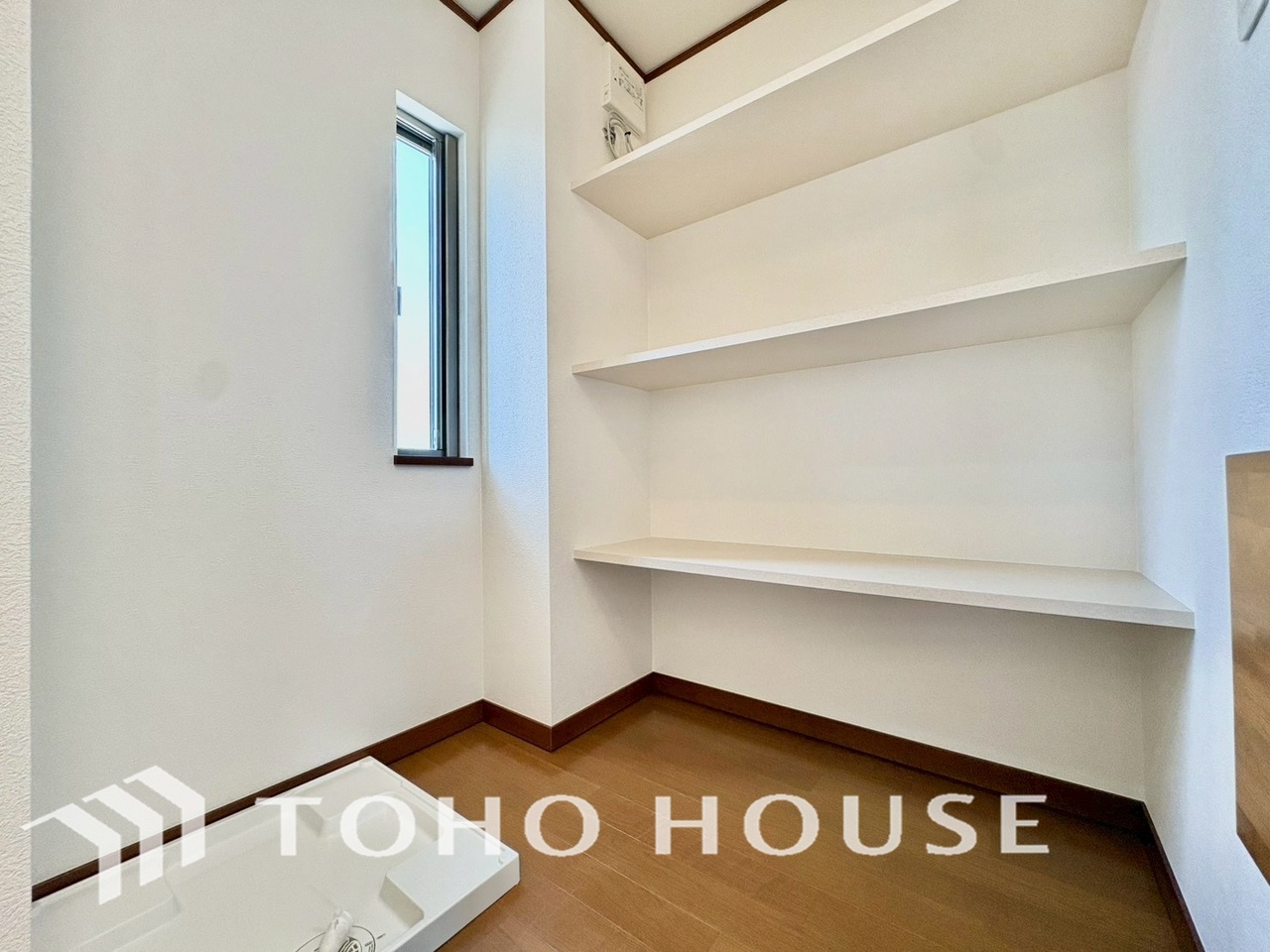 建物内部の収納には拘りました。共有部分に設けた収納。お荷物が多い方にも安心です。