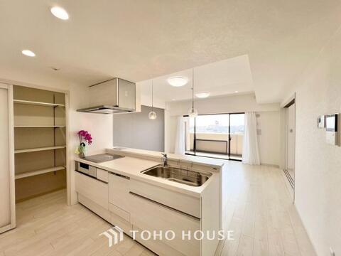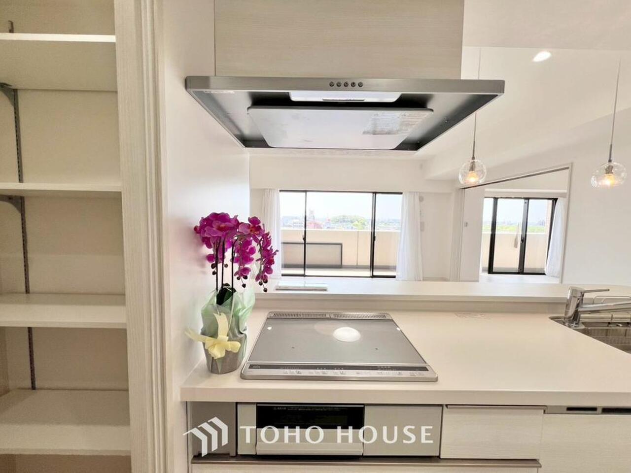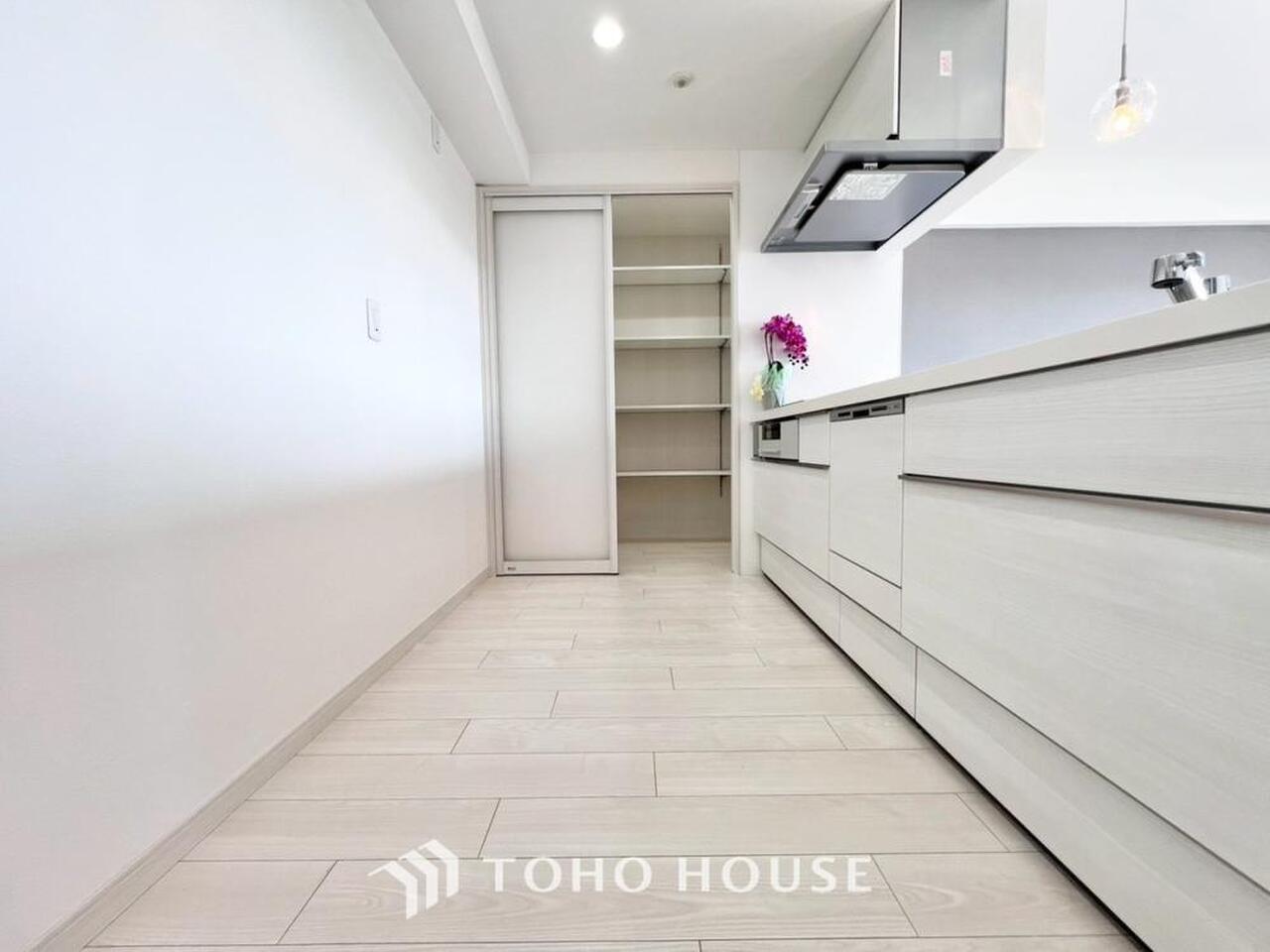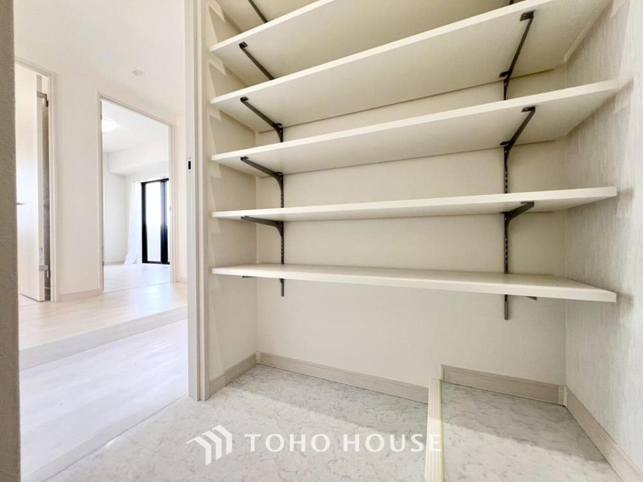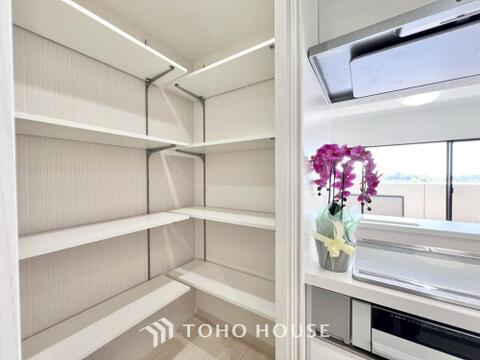 キッチン横にはパントリーを完備。ついつい買いすぎてしまった日用品や食料品のストックなどに。