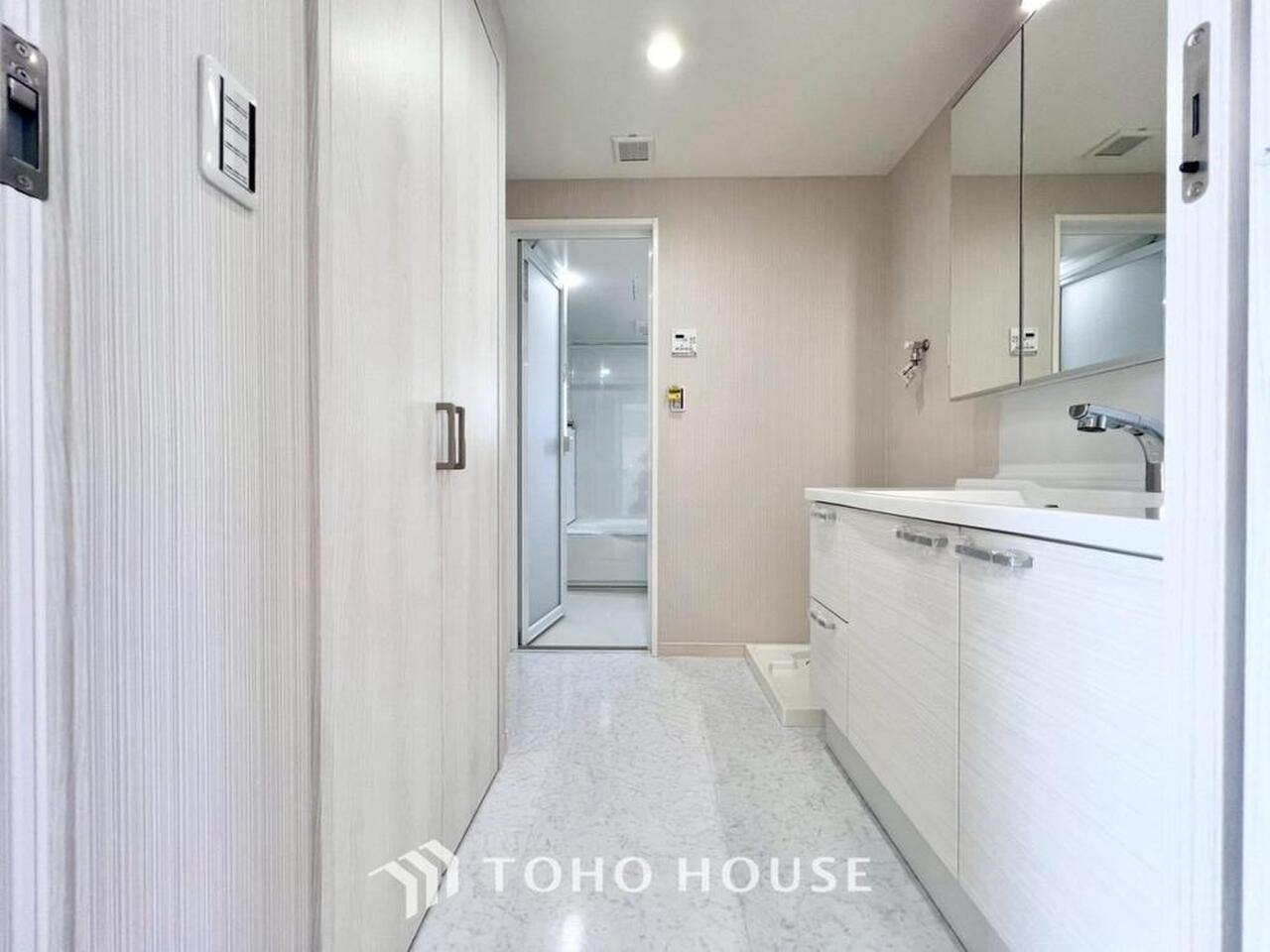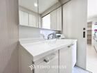 身だしなみのチェックがしやすい大きな鏡、下には収納がたっぷり。スッキリとした空間を演出いたします。