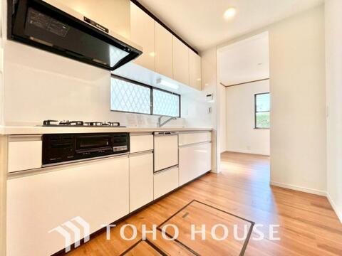 夫婦そろってキッチンに立っても調理がしやすく余裕の広さ。家事をしながら会話も弾みます。