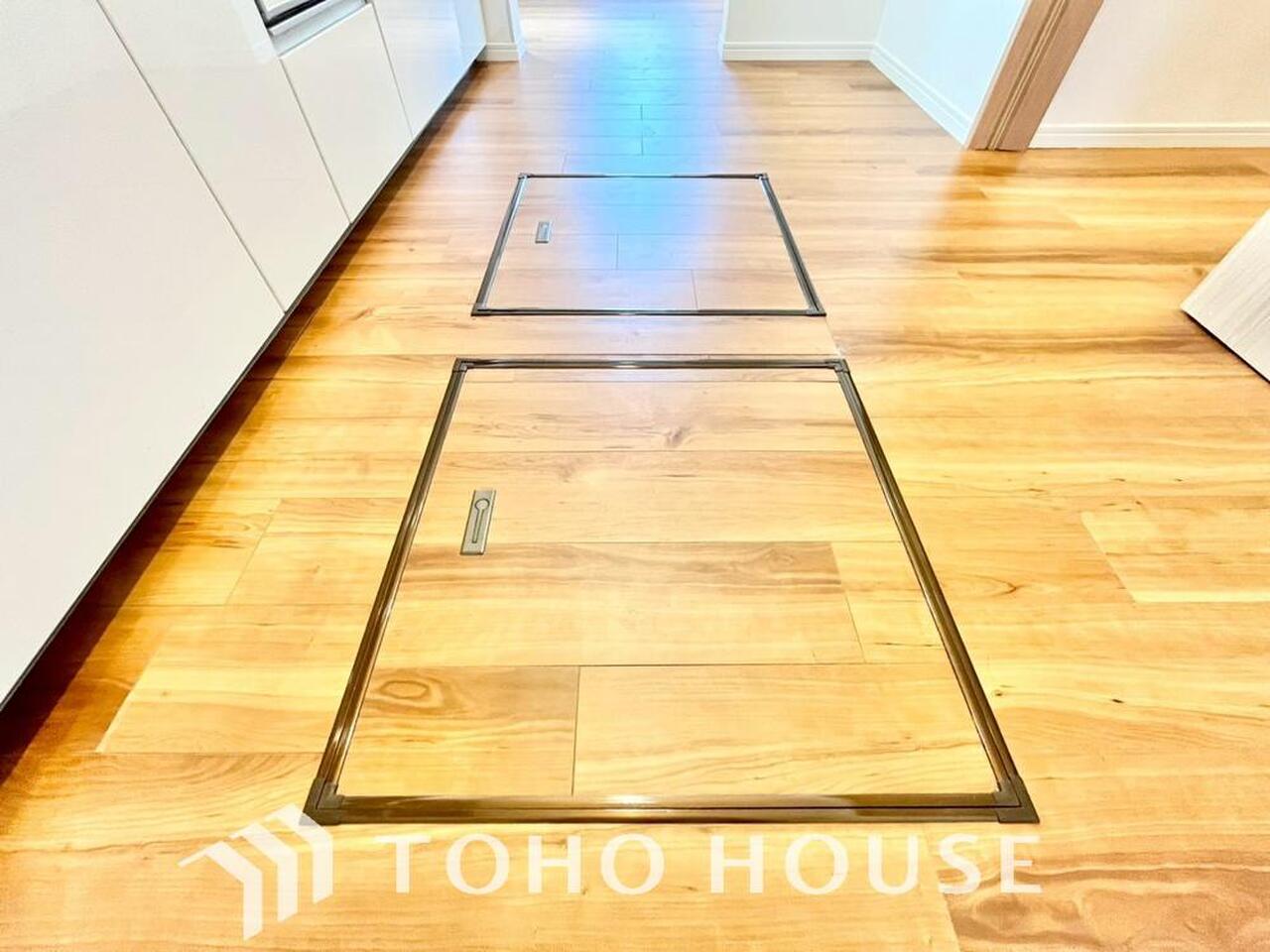 食品ストックや非常食・保存食の保管庫として活用できます。住まいの床下点検口としての役割もあります。