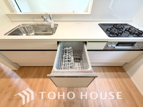 ビルトイン食洗機。高温のお湯や高圧水流を使うことにより汚れを効果的に落とすことができます。