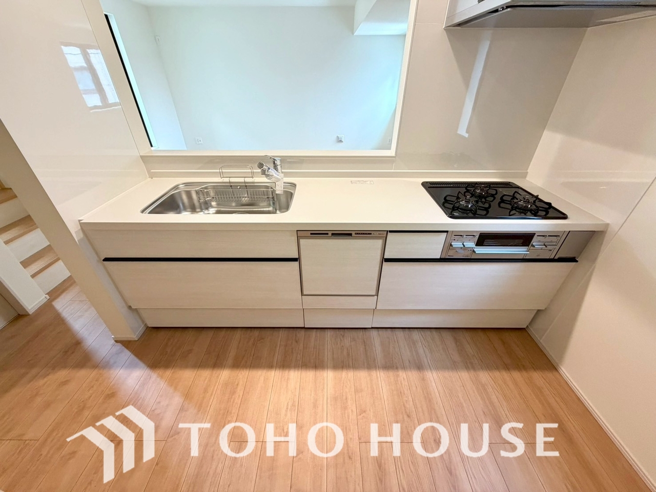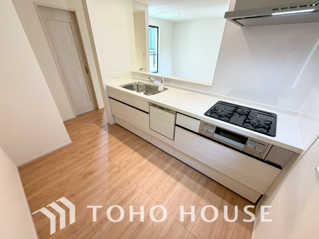 充実した収納スペースを搭載したシステムキッチンは、日々の家事がはかどります。