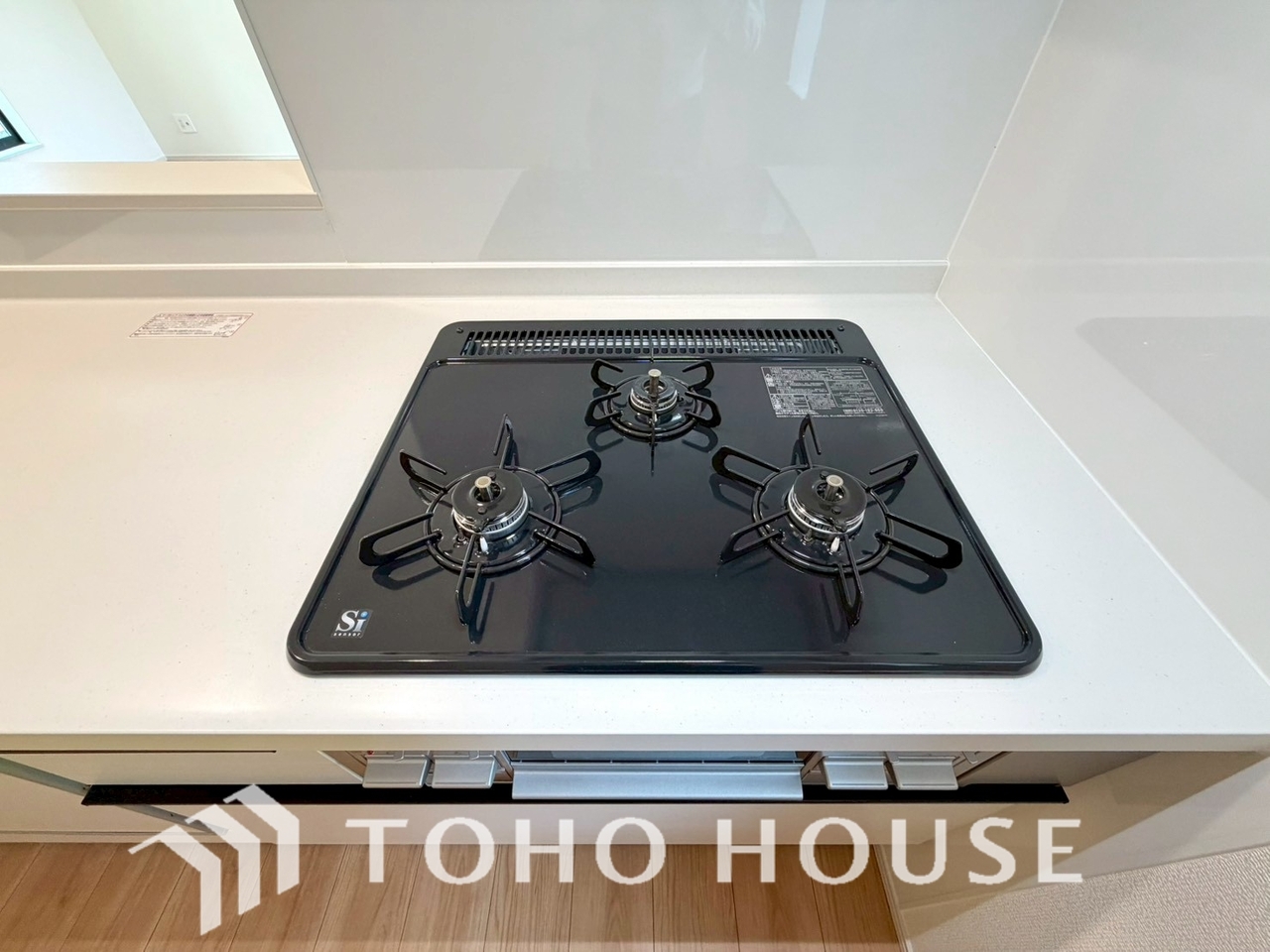 3口コンロは一度に複数のお料理を作ることができるメリットがあります。毎日のキッチンタイムを効率よく。