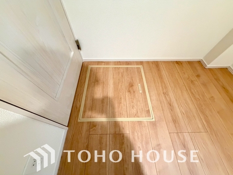 スペースを上手く活用した床下収納はあると何かと便利。食料のストック品はもちろん、掃除用具など。