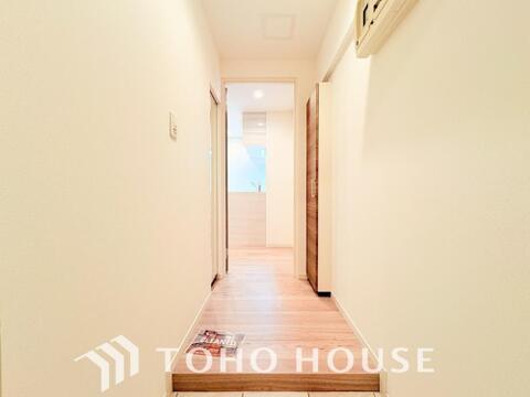 玄関そばの廊下収納。日用品のストックや防災グッズを置いたりと、何かと便利に使えます。