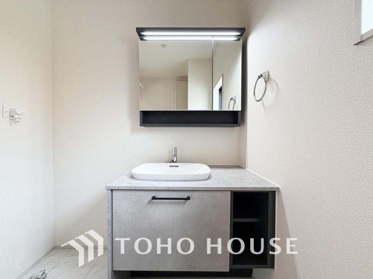 お家の中でも特にプライベートスペースとなる洗面所は、洗濯場所と浴室を同じ空間でまとめております。