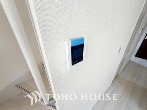 誰が来てもわかる様にモニター付きインターホンを設置。家事導線を考慮した個所に設置し、防犯性と利便性に優れ快適と安らぎを合わせた優しい設計。