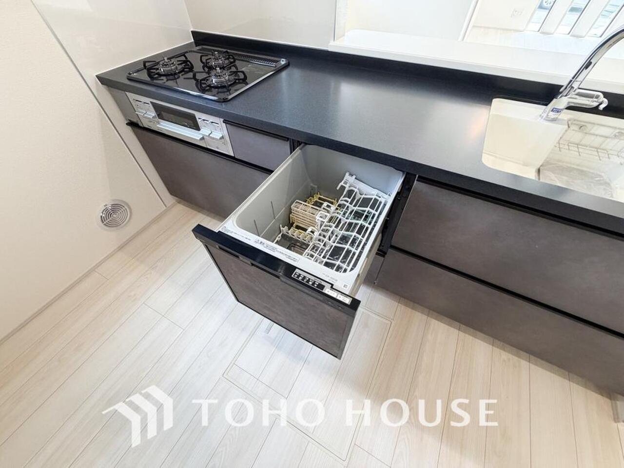 「ビルトインタイプ食器洗乾燥機」通常の手洗いでは使用出来ないほど高温のお湯や高圧水流を使うことにより汚れを効果的に落とすことができる。