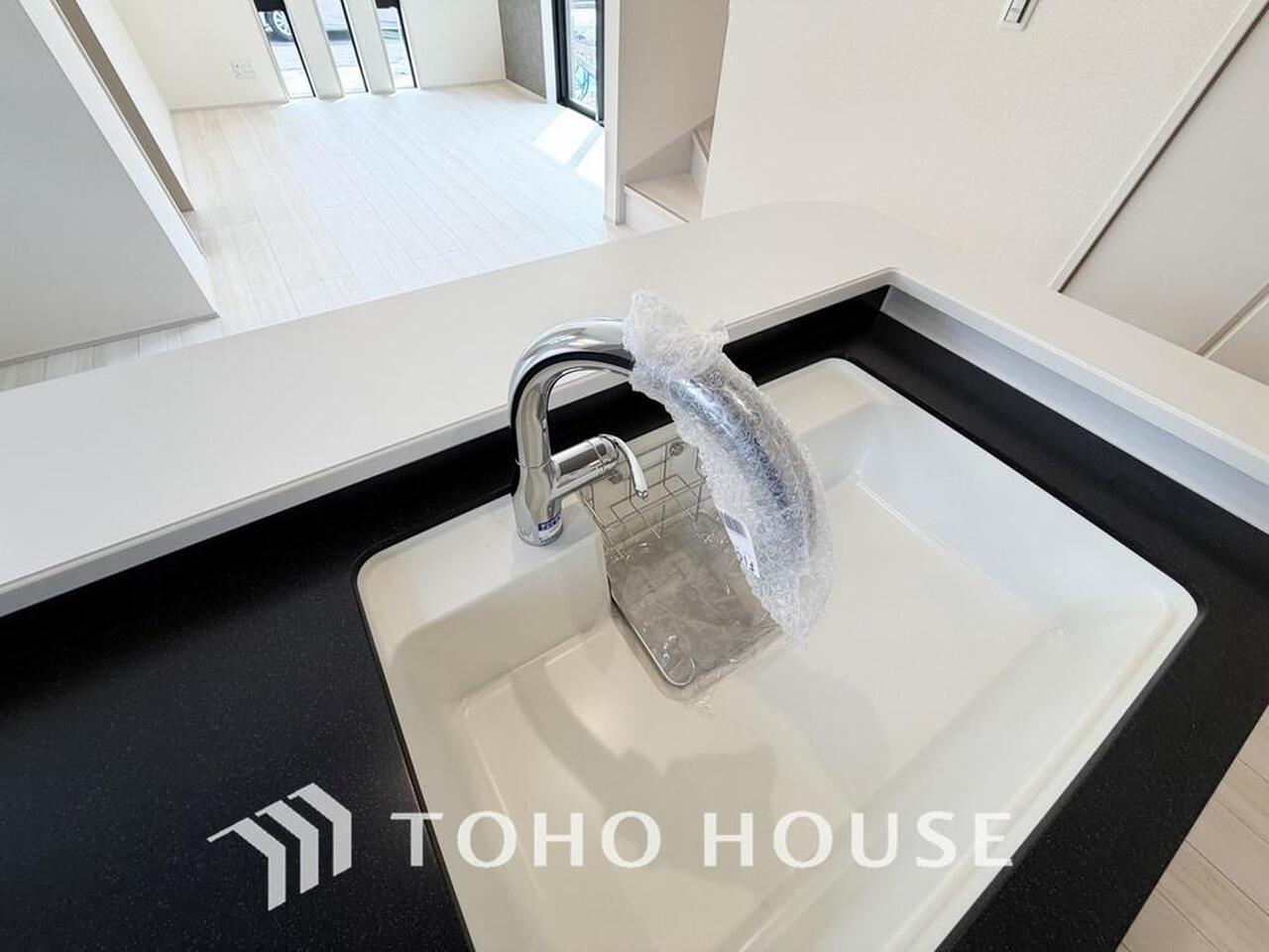 「タッチレス水栓」水栓に直接手を触れることなく、吐水/止水の切り替えができる便利なタッチレス水栓。洗い物中の便利さは言うまでもなく、節水効果や汚れ防止も期待できる次世代型アイテムです。