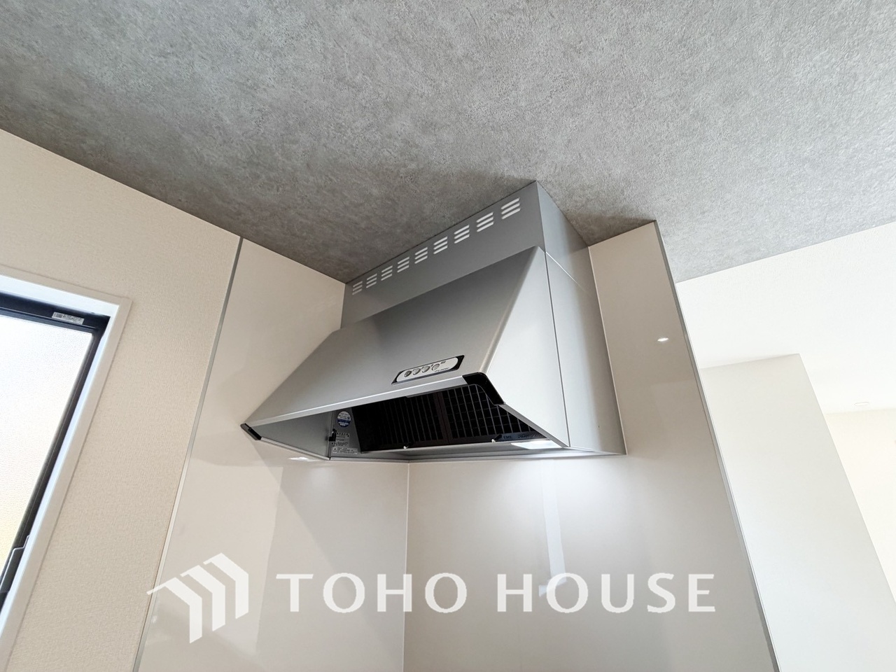 キッチンの換気扇はスタイリッシュなデザインで、日々のお手入れもラクラクな仕様となっております。