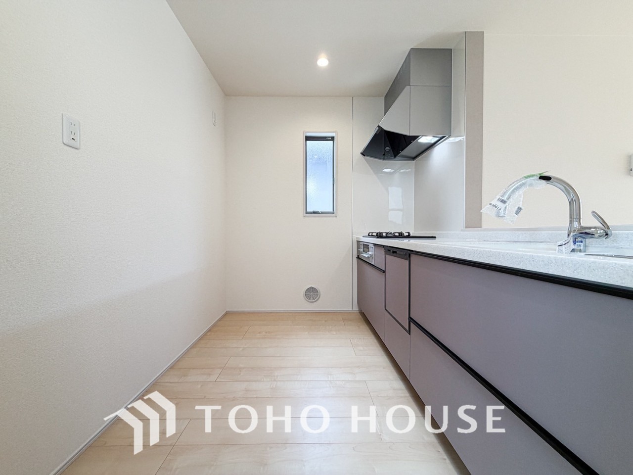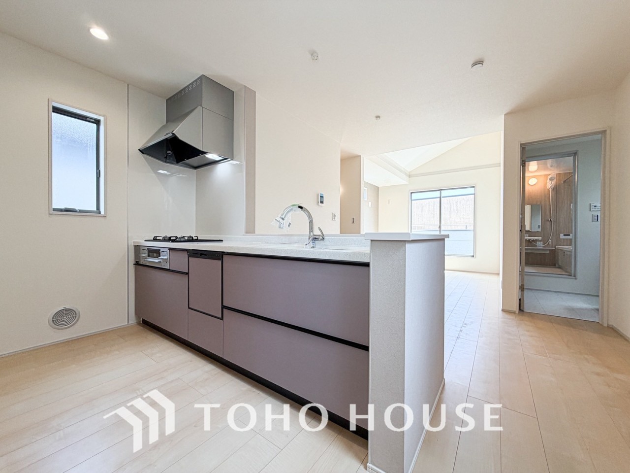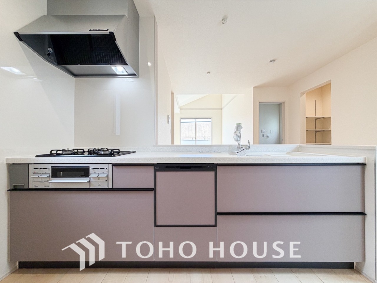 夫婦そろってキッチンに立っても調理がしやすく余裕の広さ。家事をしながら会話も弾みます。