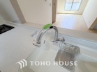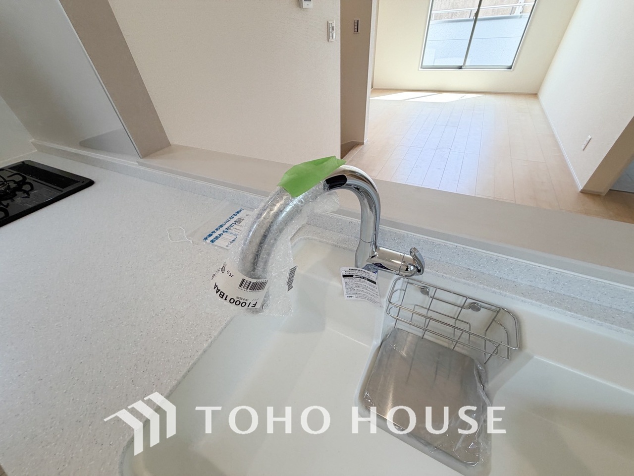 浄水器ボタンひとつで浄水と原水に切り替えられる浄水器一体型水洗を使用。