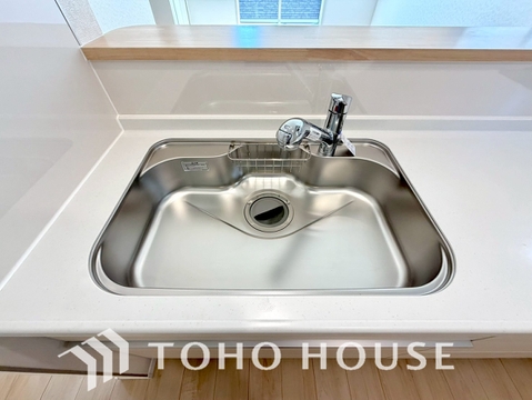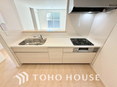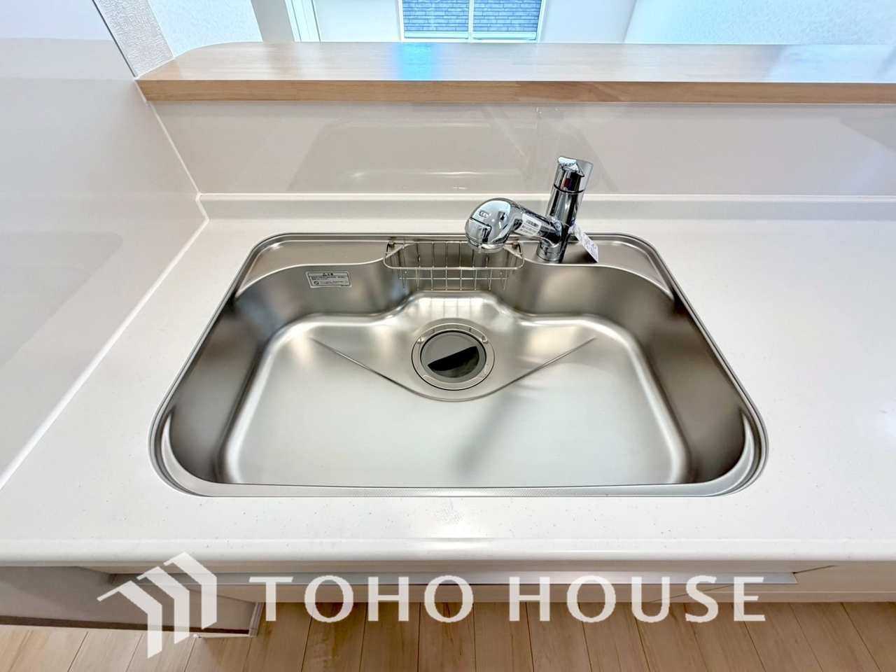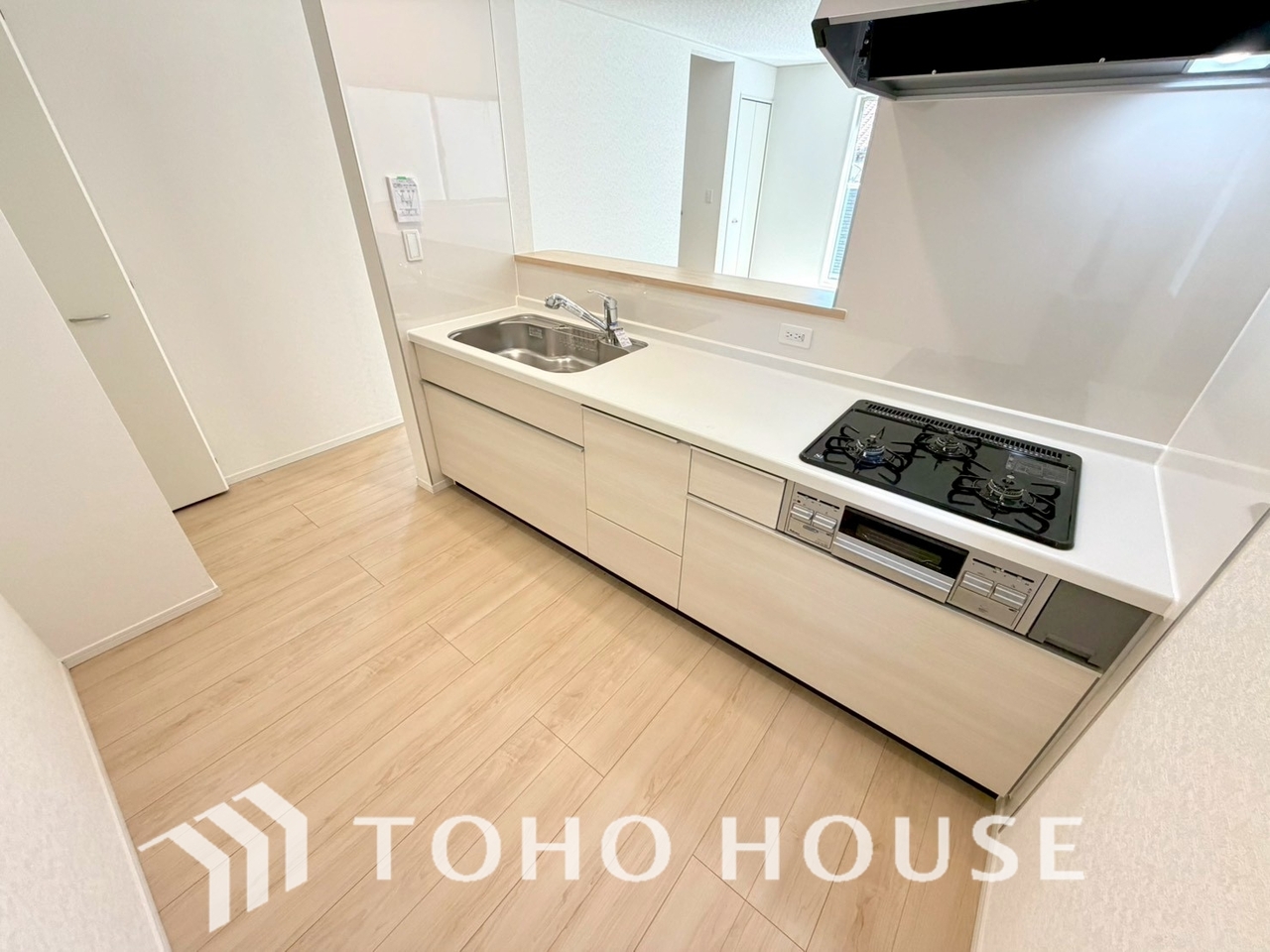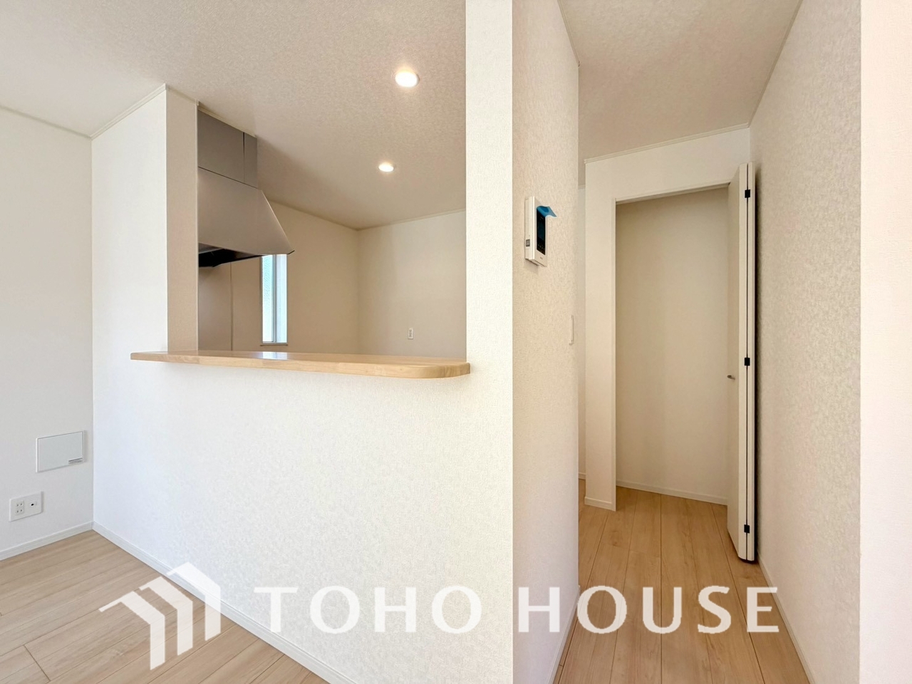 キッチンは、リビングで寛ぐ家族や小さなお子様を見守りながら料理が出来る対面式の温もり設計。