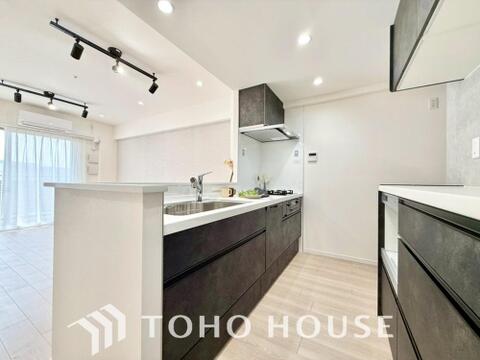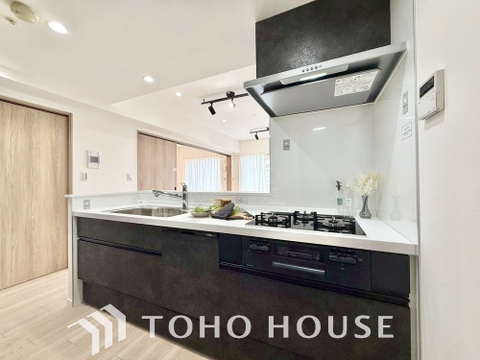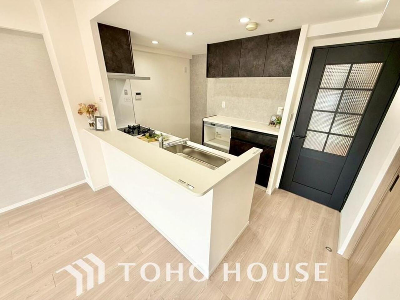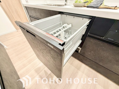 ビルトイン食器洗浄乾燥機付きのシステムキッチン。毎日の家事負担を軽減する嬉しい設備です。
