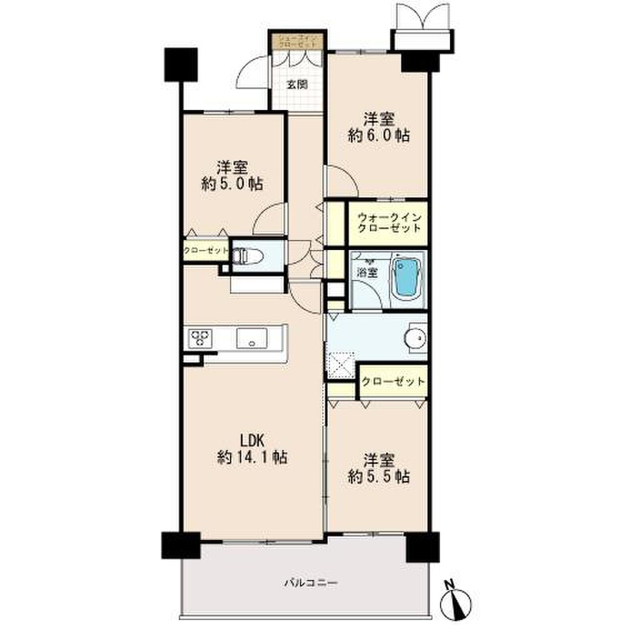 | 間取り | 3LDK | 専有面積 | 72.42m²(壁芯) |