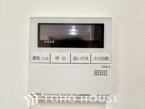 お風呂場と台所に操作リモコンがあり、キッチン近くにある給湯リモコンは、お料理の最中でもリビングで寛いでいるなかでもボタン一つで簡単に沸かせて便利ですね。