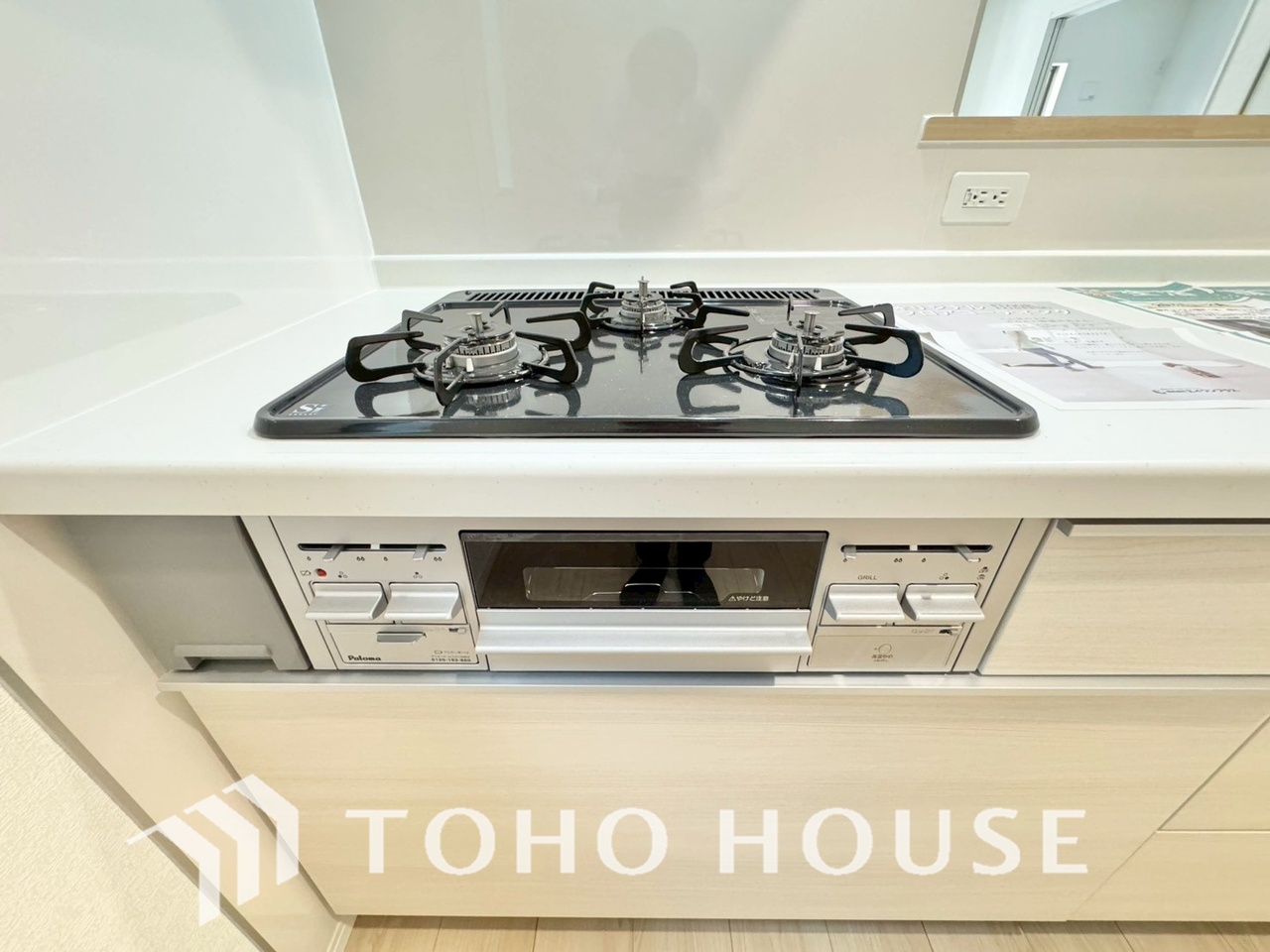 3口コンロは一度に複数のお料理を作ることができるメリットがあります。毎日のキッチンタイムを効率よく。