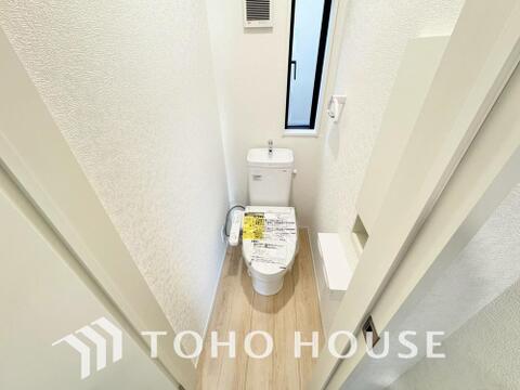 十分な広さと清潔感のあるカラーで纏まったおトイレ。時間に余裕とゆとりを持たせます。