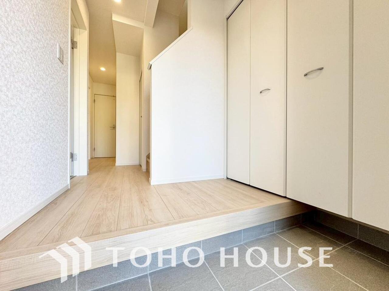 玄関そばの廊下収納。日用品のストックや防災グッズを置いたりと、何かと便利に使えます。
