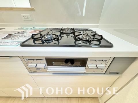 3口コンロは一度に複数のお料理を作ることができるメリットがあります。毎日のキッチンタイムを効率よく。