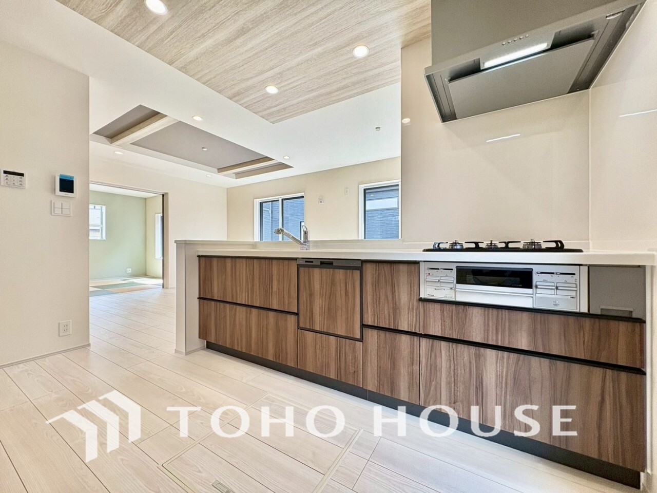 対面キッチンは、目線の先が空間の広がりのあるリビングやダイニングなので、開放感を感じられます。