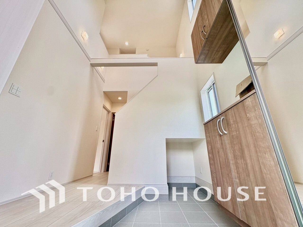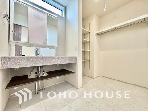 身だしなみのチェックがしやすい大きな鏡、下には収納がたっぷり。スッキリとした空間を演出いたします。
