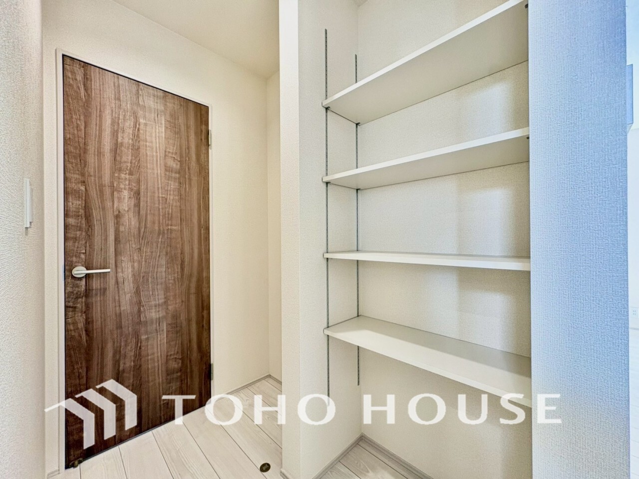 建物内部の収納には拘りました。共有部分に設けた収納。お荷物が多い方にも安心です。