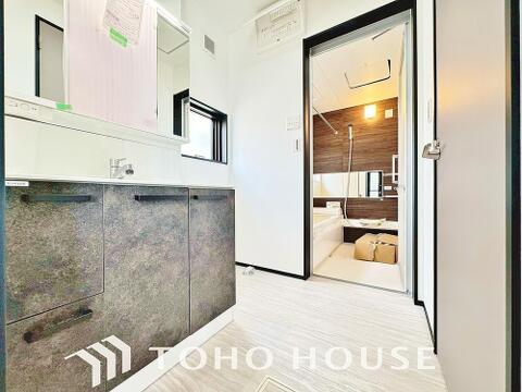 身だしなみのチェックがしやすい大きな鏡、下には収納がたっぷり。スッキリとした空間を演出いたします。