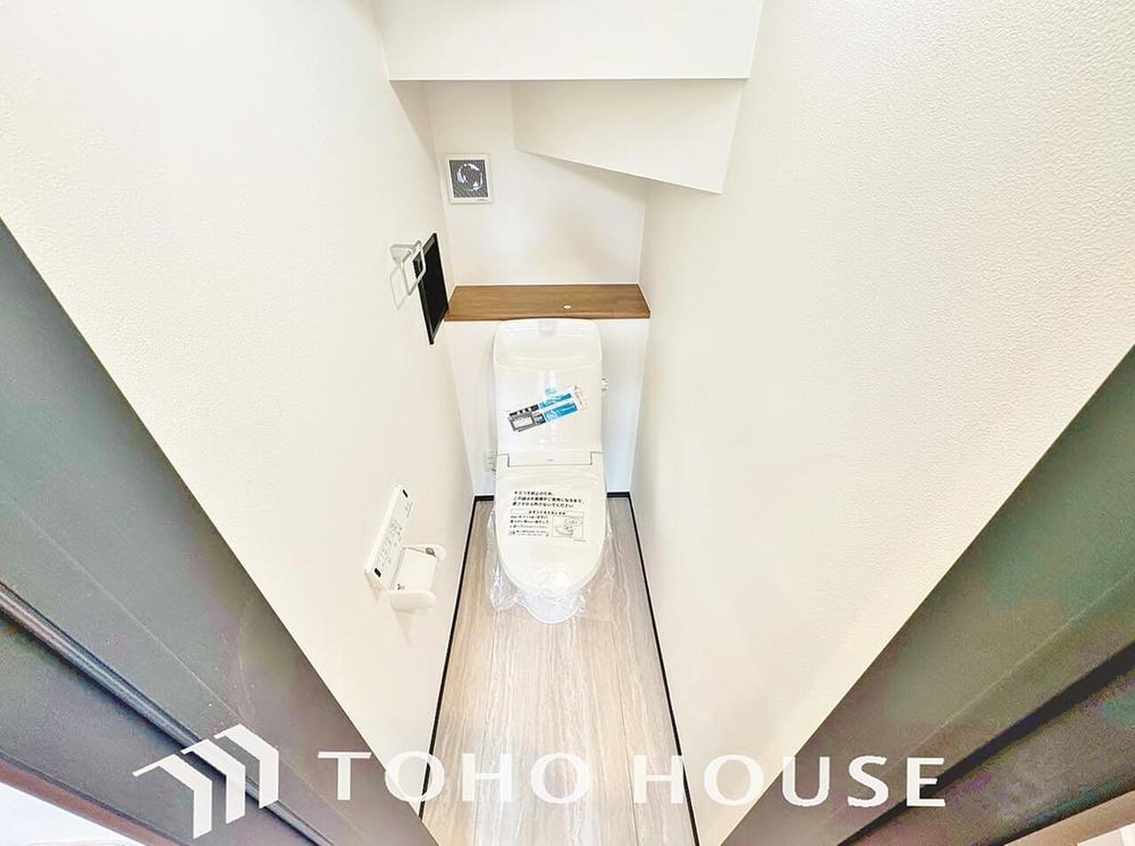 十分な広さと清潔感のあるカラーで纏まったおトイレ。時間に余裕とゆとりを持たせます。