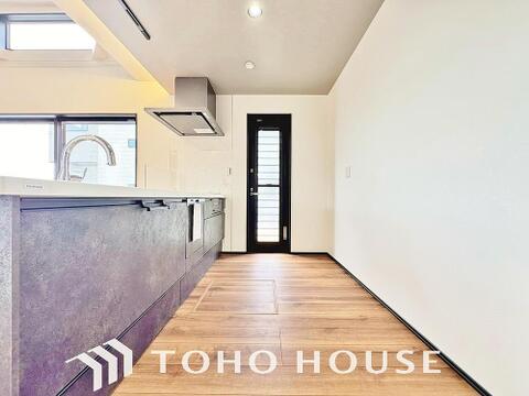 夫婦そろってキッチンに立っても調理がしやすく余裕の広さ。家事をしながら会話も弾みます。