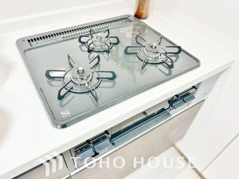 3口コンロは一度に複数のお料理を作ることができるメリットがあります。毎日のキッチンタイムを効率よく。
