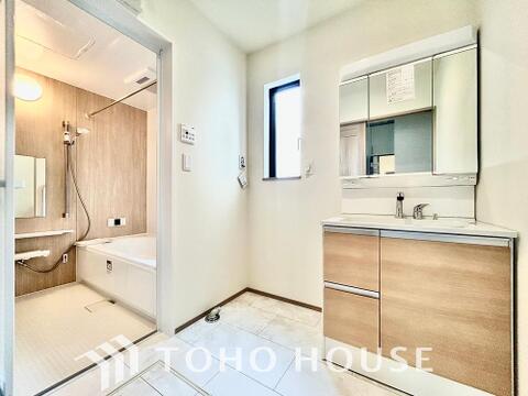 身だしなみのチェックがしやすい大きな鏡、下には収納がたっぷり。スッキリとした空間を演出いたします。