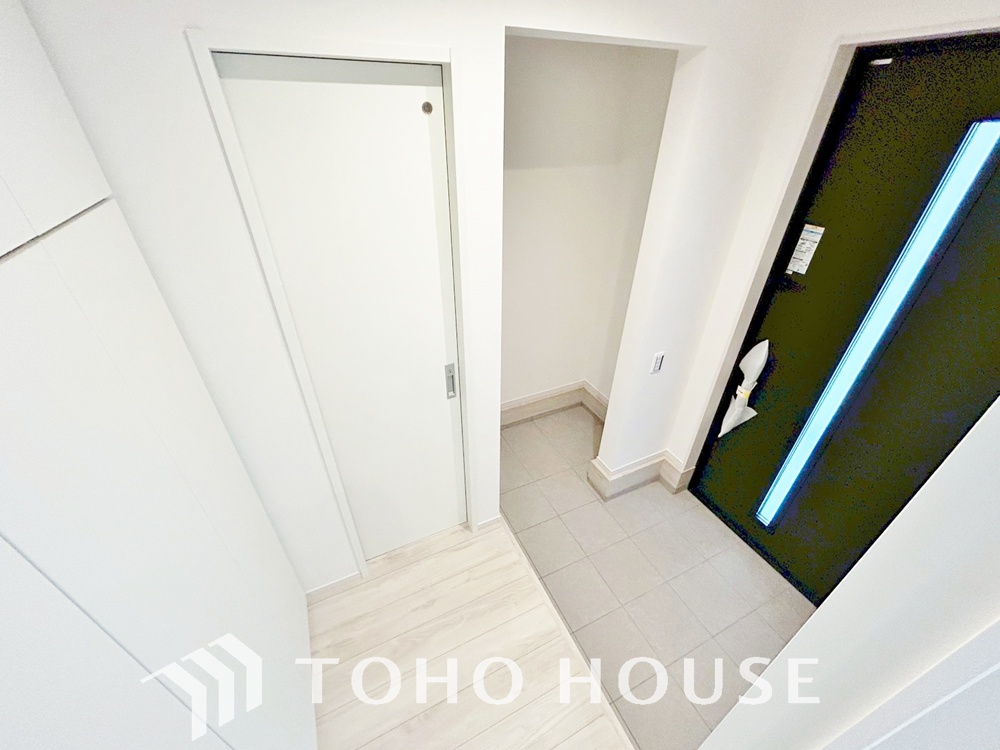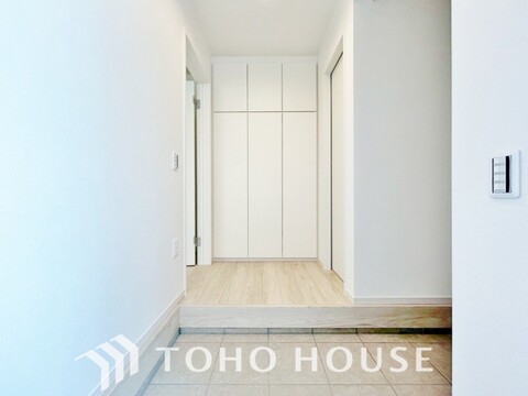 玄関そばの廊下収納。日用品のストックや防災グッズを置いたりと、何かと便利に使えます。