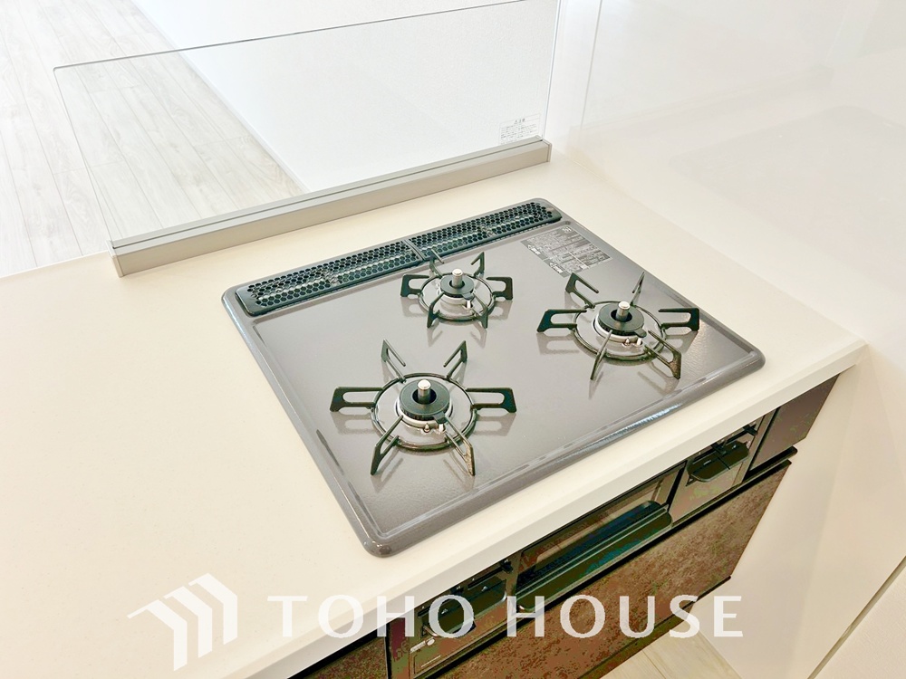 3口コンロは一度に複数のお料理を作ることができるメリットがあります。毎日のキッチンタイムを効率よく。