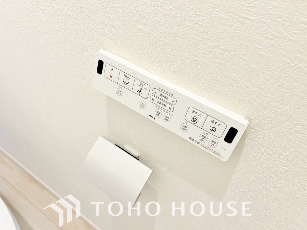 十分な広さと清潔感のあるカラーで纏まったおトイレ。時間に余裕とゆとりを持たせます。