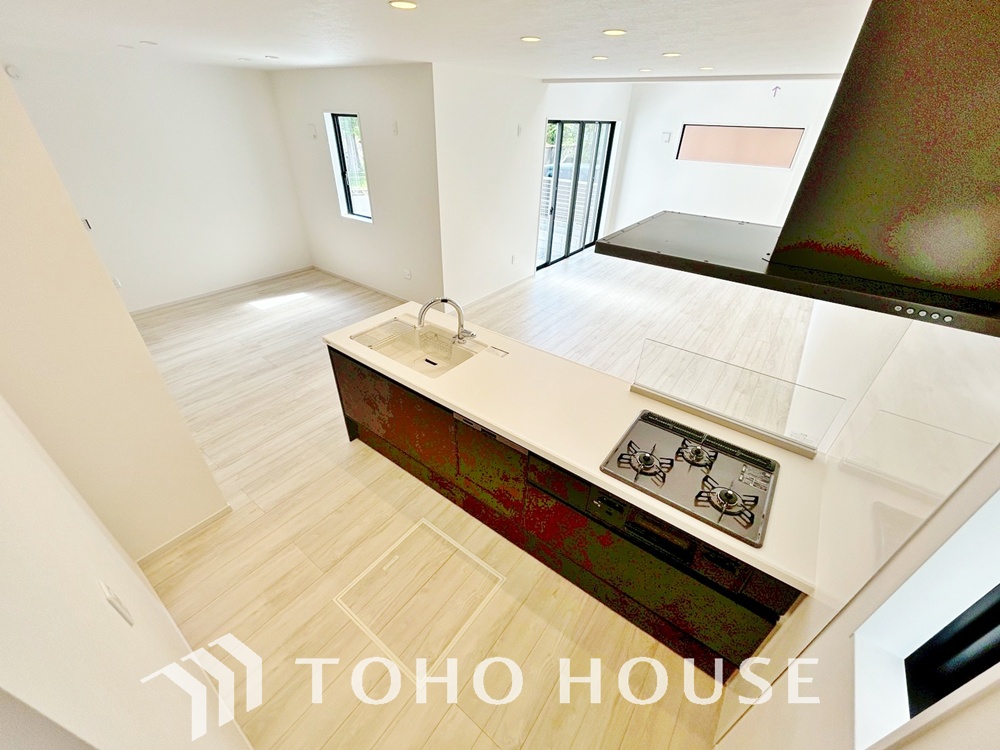 対面キッチンは、目線の先が空間の広がりのあるリビングやダイニングなので、開放感を感じられます。