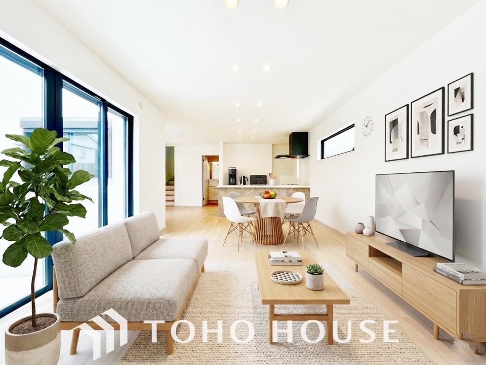 広いLDKでは家族が集まり一緒の時間を過ごせる工夫がされております。