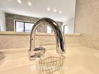 浄水器ボタンひとつで浄水と原水に切り替えられる浄水器一体型水栓を使用。