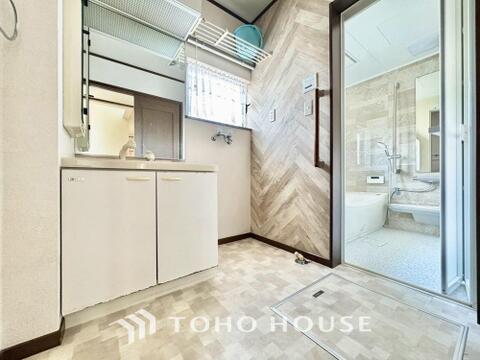 お家の中でも特にプライベートスペースとなる洗面所は、洗濯場所と浴室を同じ空間でまとめております。