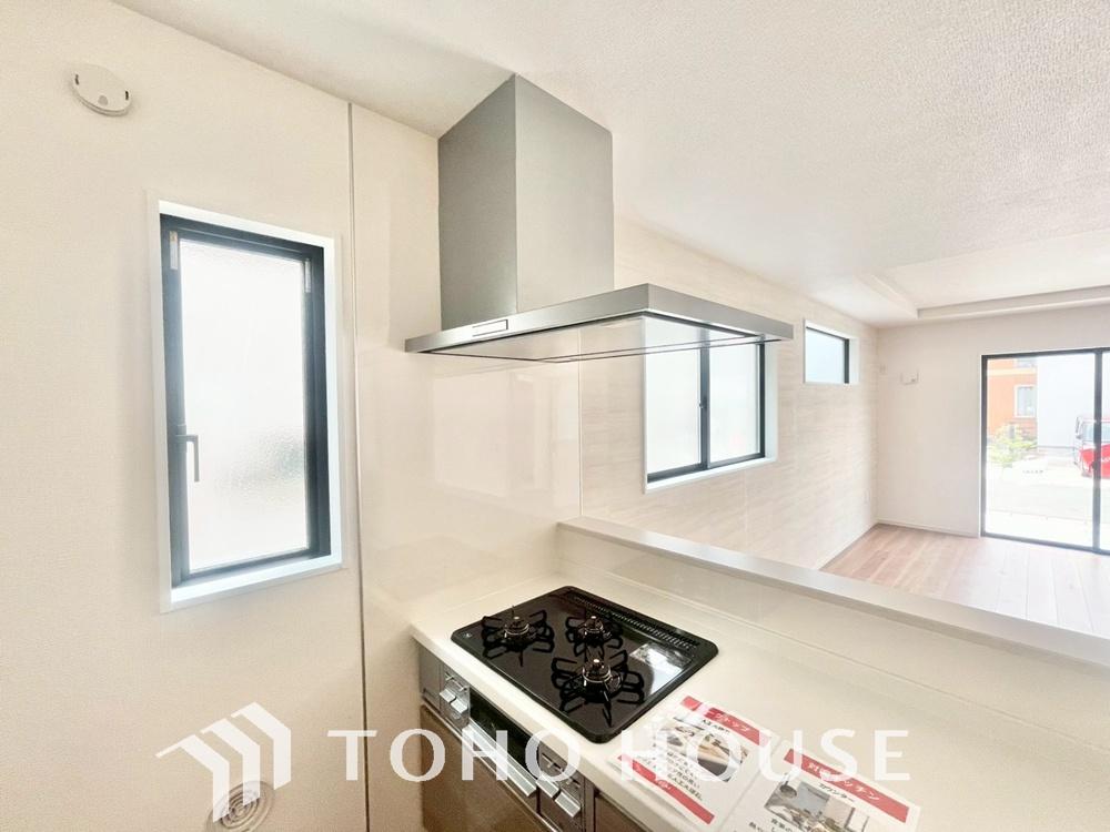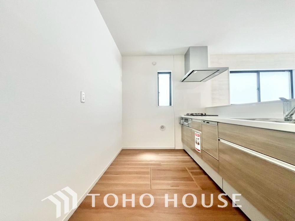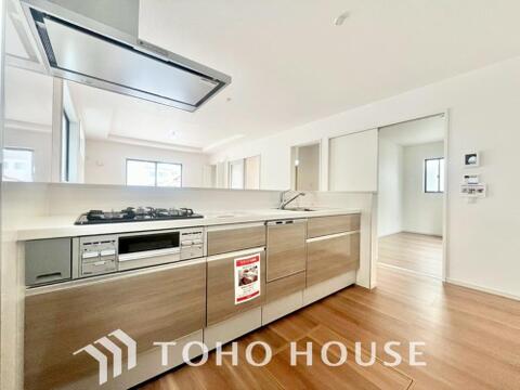 夫婦そろってキッチンに立っても調理がしやすく余裕の広さ。家事をしながら会話も弾みます。